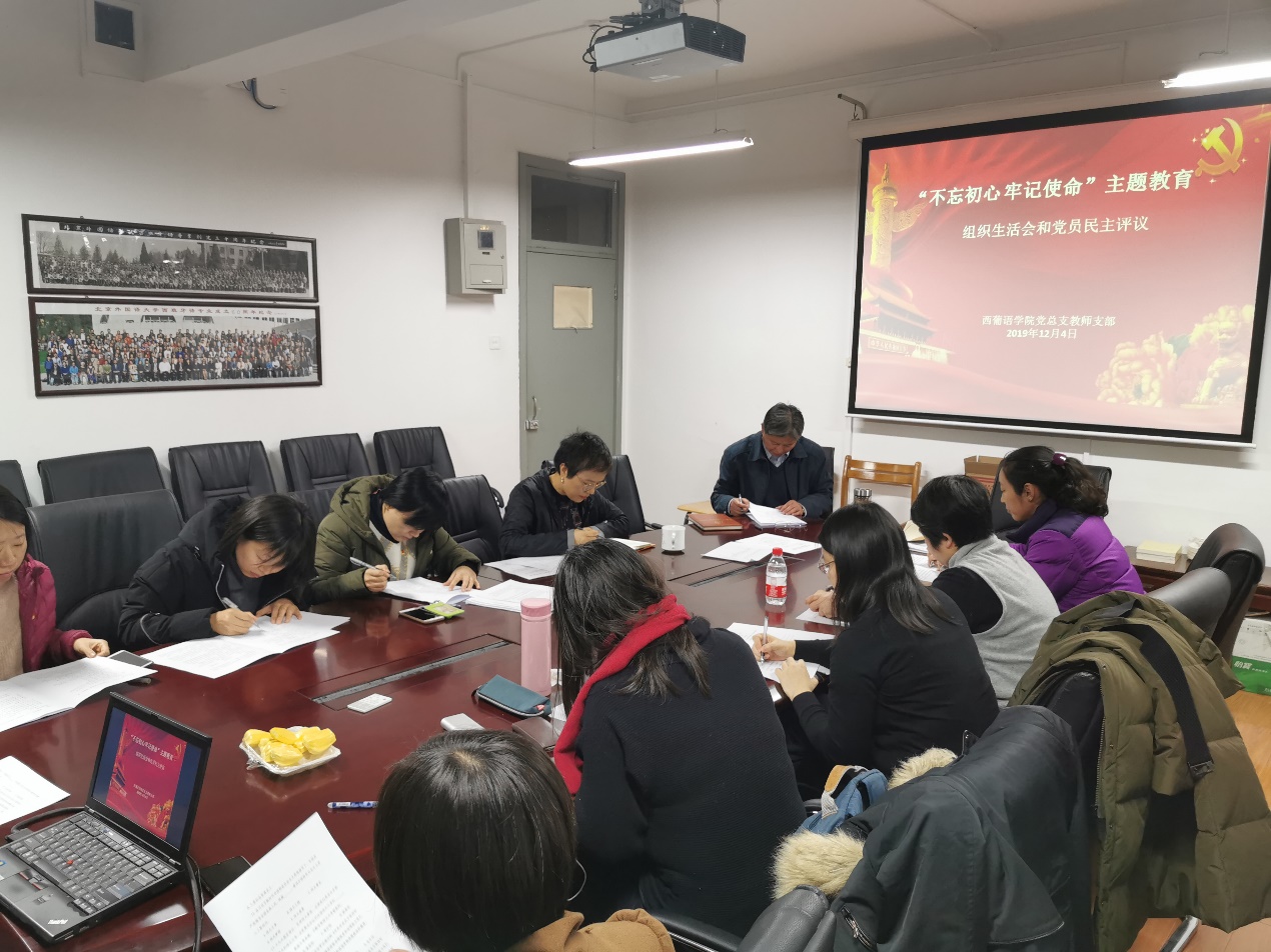 2019年12月4日下午四点,公司党总支教师党支部在主楼219会议室集体学习十九届四中全会精神并召开专题组织生活会。会议由教师支部书记张方方主持,支部全体教师党员出席会议。