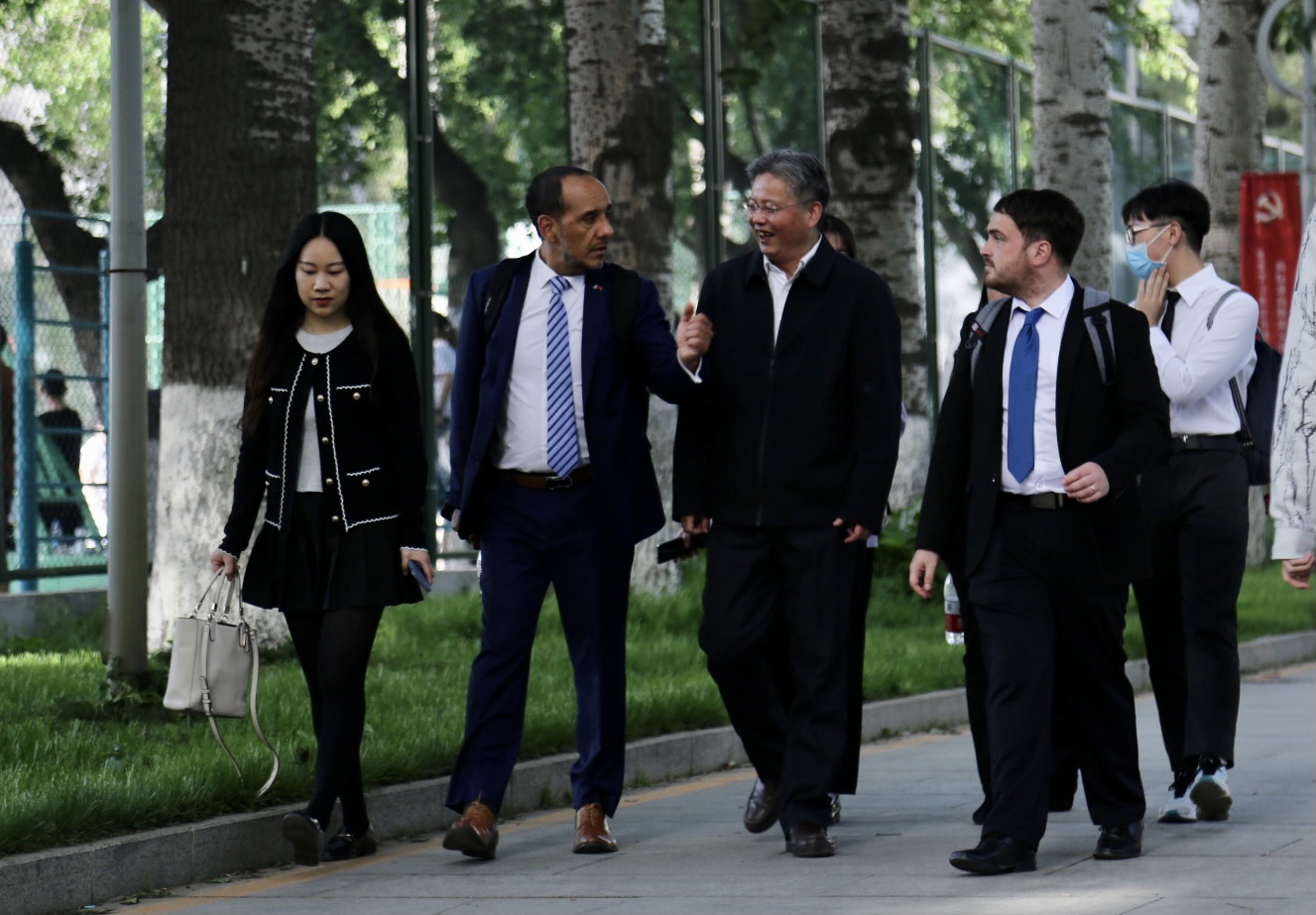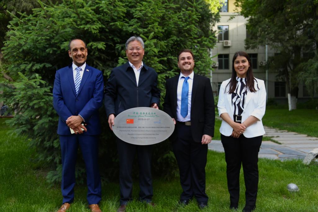 讲座结束后,在​英国365集团公司官网经理常福良的陪同下,乌拉圭驻华使馆领事塞尔西奥·德亚巴列、潘慧敏老师、张哲海老师一起参观了北外校园的“中国—乌拉圭友谊树”。