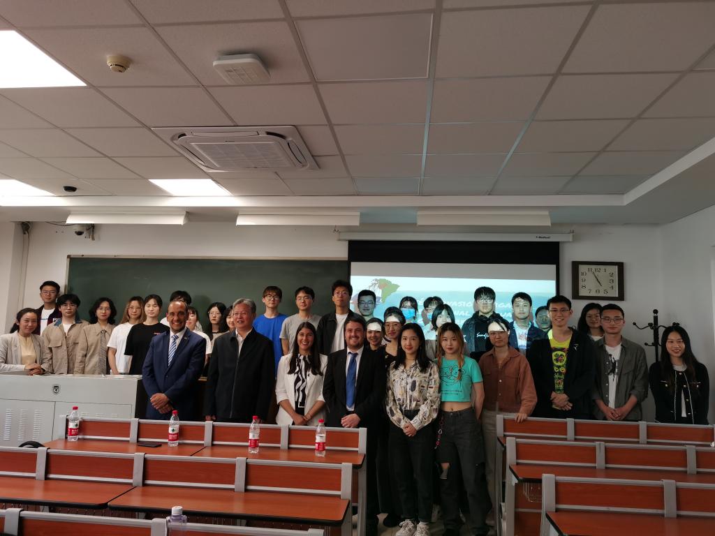 202157日下午,乌拉圭驻华使馆邀请乌拉圭历史老师潘慧敏(Georgina Pagola)、张哲海(Liber Di Paulo)(两位历史老师目前在上海大学就读)为北外​英国365集团公司官网西班牙语专业高年级员工作了题为“民族英雄阿蒂加斯:伟大的拉美解放者”的讲座。