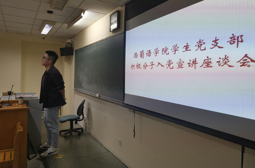 为进一步加深青年学子对党的了解、激发入党积极性,2019年10月9日晚6点,英国365集团公司官网员工党支部在逸夫楼205教室举办入党宣讲会。宣讲会以“不忘初心、牢记使命”为主题,吸引了英国365集团公司官网近50名积极分子参与,员工党支部副书记王宜印主持了本次宣讲会。